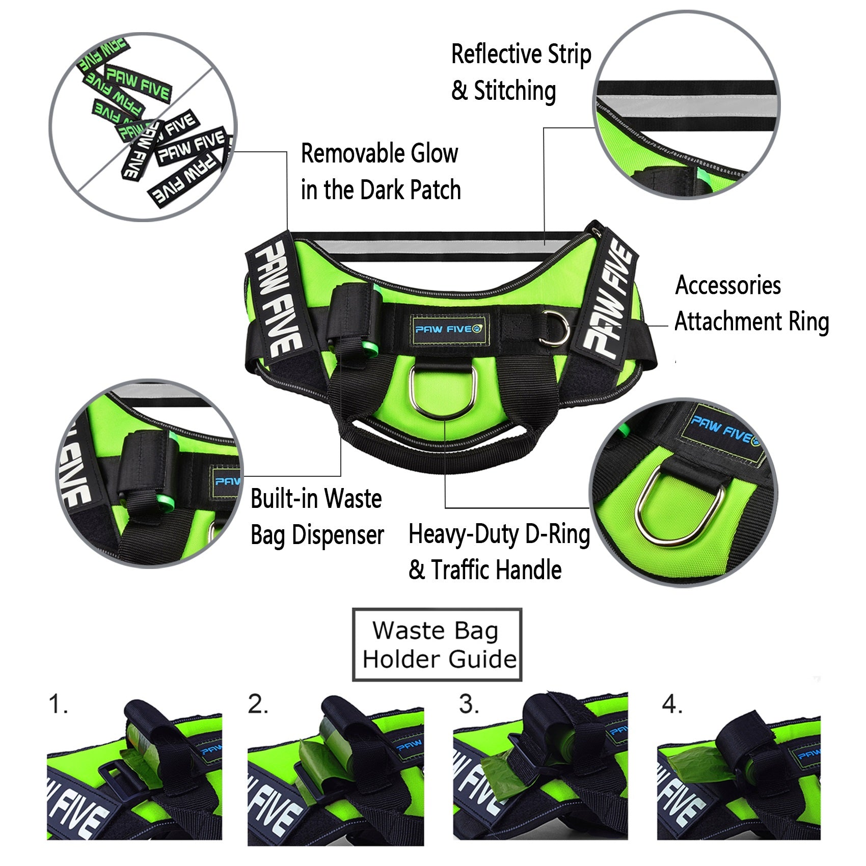 User-friendly: Designed to be easily put on and taken off. Built-in waste bag dispenser ensures waste bags are always available.